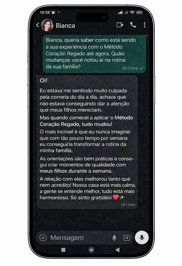 E é exatamente por isso que o Método Coração Regado existe — para resgatar momentos de qualidade, fé e presença, com apenas 15 minutos por semana, trazendo sua família de volta para o que realmente importa.