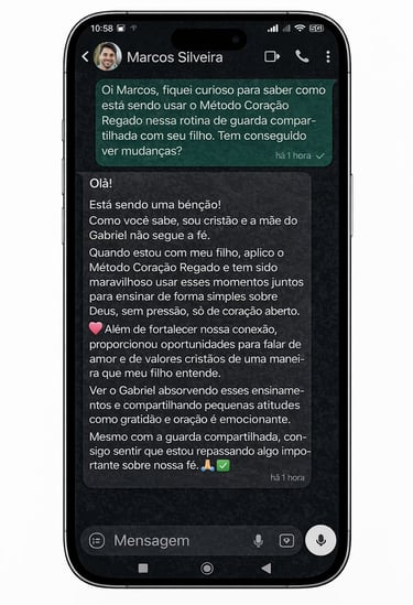 Eu vivia cansado e afastado do meu filho. O método foi como uma chave: simples, aplicável e poderoso. Hoje temos um momento de fé juntos toda semana.